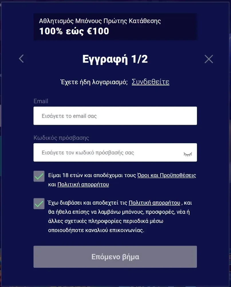 Η δημιουργία λογαριασμού στην πλατφόρμα μας είναι απλή και διαρκεί μόνο λίγα λεπτά. Η διαδικασία εγγραφής μας είναι πλήρως βελτιστοποιημένη για Έλληνες παίκτες με υποστήριξη τοπικών εγγράφων ταυτότητας και απρόσκοπτη ενσωμάτωση με τα ελληνικά τραπεζικά συστήματα.